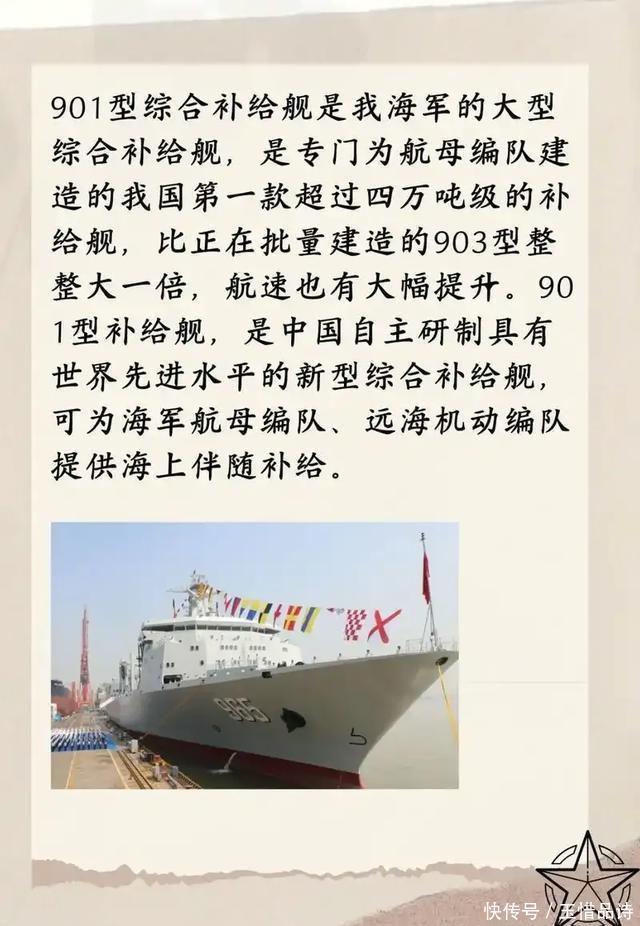 3.战略布局的深层逻辑 反介入/区域拒止(A2/AD)体系:903型支撑近海防御,901型保障远洋威慑,形成“近海封锁-远洋破袭”的双重能力。例如,903型可为东风-26反舰弹道导弹发射舰提供快速补给,而901型支持航母编队在西太平洋实施攻势布雷。 国际竞争维度:中国新型补给舰的5.5万吨排水量已超越美国“供应”级(4.9万吨),其每小时1200吨的液货补给效率更是创下世界纪录。这种技术领先性正转化为军贸市场的竞争力——中东某国已表达采购意向,报价较美国同类舰艇低40%。